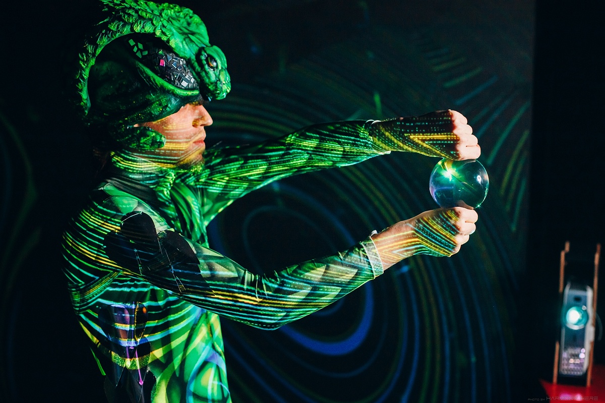 #PHOTO_1#Контактные жонглеры могут работать как номер на сцене, так и интерактив со зрителем или встречу гостей. Продолжительность номера — около 5 минут. После шоу артист может провести мини-интерактив с мастер-классом еще на 10-15 минут. В формате интерактива жонглер показывает трюки в непосредственной близости от гостей, фотографируется с ними. Зрители могут даже подержать в руках акриловые сферы и убедиться, что никаких секретов нет. Шар абсолютно гладкий и удерживает его только мастерство артиста!